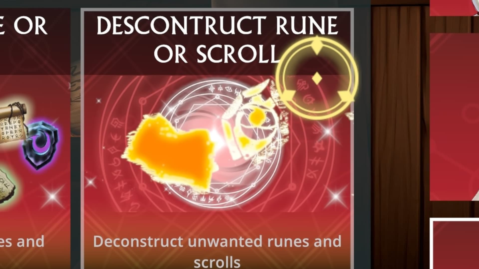 I know many players who are limited on epic scrolls and yet have an abundance of mythic and at first light this option looks enticing… However.. how the heck can you ‘DESCONTRUCT’ is that even a word!! An mythic light scroll for example and get epic poison.. really.